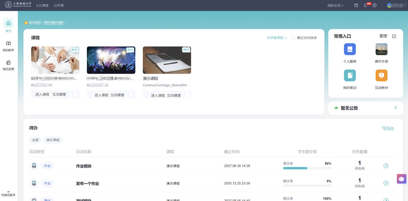 E云课堂是学校打造的一体化智能教学平台,致力于构建泛在化、智能化的学习环境,支持师生随时随地开展教与学活动。平台全面融入人工智能技术,贯穿教学全过程——课前、课中与课后,实现教学内容、教学方法与学习评价的智能化升级,打造覆盖全场景、全终端,融合线上与线下、同步与异步的新型教学模式。