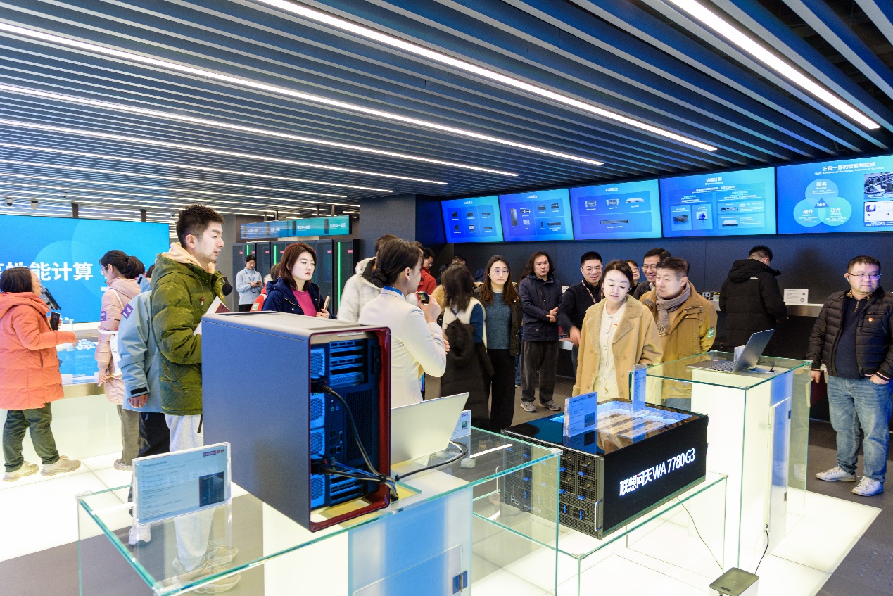 校党委委员、图书信息中心主任孙小影,图信中心党支部书记江丽萍等二十余名党员及业务骨干参加此次交流活动。支部成员来到位于浦东张江的联想上海创新科技园,在工作人员引导下参观了联想未来中心展厅。通过工作人员介绍及演示,同志们沉浸式体验不同智能应用场景,包括在人工智能、绿色计算、智慧城市、智慧教育等领域的前沿技术成果和实际应用案例。支部成员现场与技术人员深入探讨,解了当前信息技术在推动产业升级、数字化转型和智慧教育中的应用趋势,进一步拓宽了对高校信息化建设未来方向的思考。