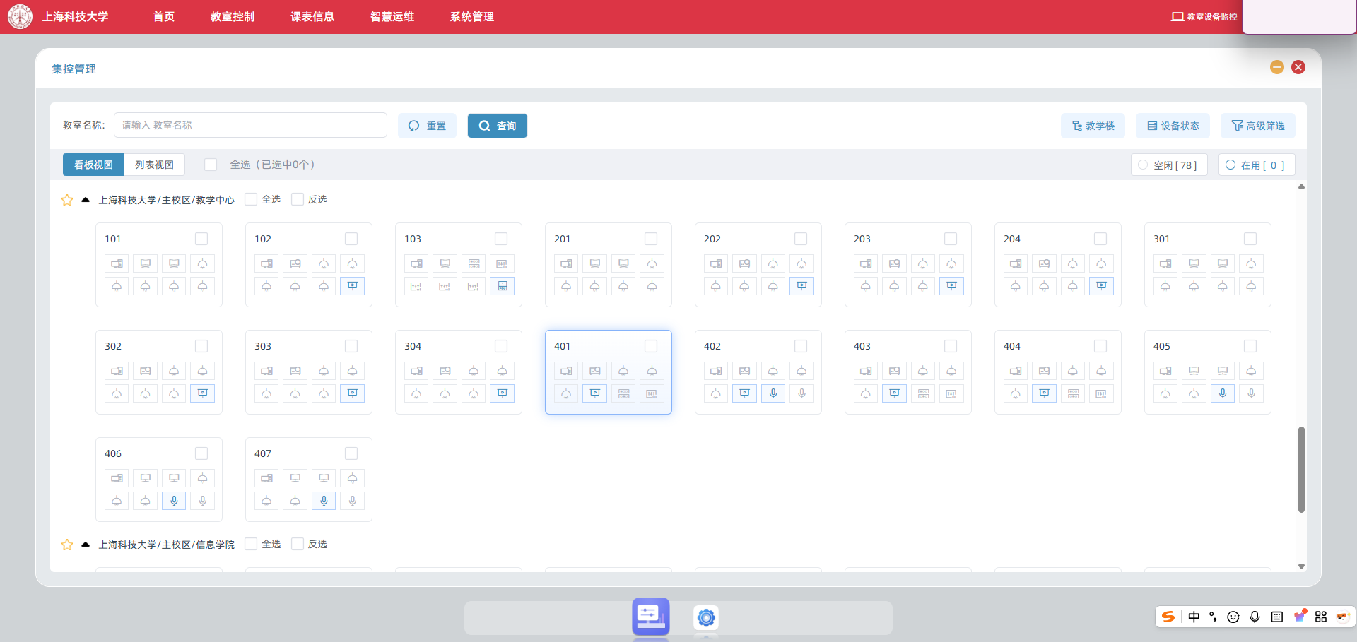 依托前沿的物联网技术,搭建起智能化的管控系统,实现了对设备全方位的实时监测。通过这一系统,运维人员不仅能够及时精准地发现设备故障,并迅速高效地解决问题,还能依据教学实际需求,灵活地调配各类资源,提升了管理效能与服务质量。截至目前,纳入该监控系统的教室数量为78间,可监管设备数量已达 1279 台,为教学活动的顺利开展提供了坚实有力的保障。