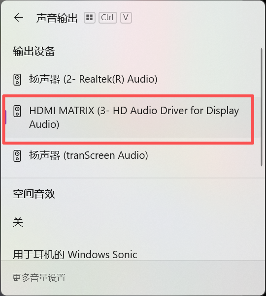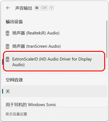 或查看笔记本声音输出通道,选择正确的音频通道,不同教室显示音频通道名称会有差异,如下图所示: