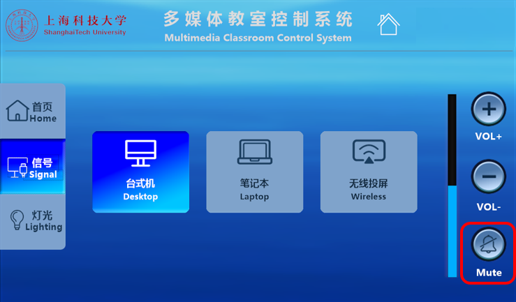 A:查看讲台触摸控制屏声音是否为静音状态(红色为静音)